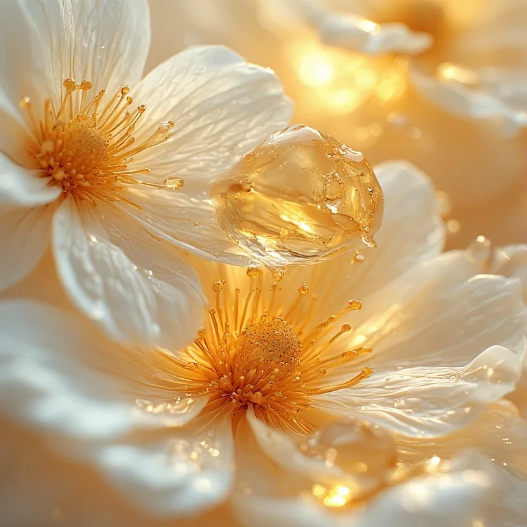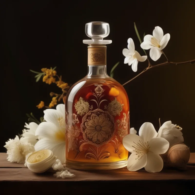 Parfumul se dezvăluie ca o seducție lentă - mai întâi, roșeața mieroasă a iasomiei, petalele tremurând de o dulceață încărcată de rouă. Apoi, se strecoară chihlimbarul, topit și întunecat, o șoaptă de căldură rășinoasă care se ondulează în jurul ușurinței florale până când acestea se contopesc: petale de catifea apăsate pe pielea încălzită de soare, polenul așternându-se peste adâncimea fumurie a sevei străvechi. Este parfumul amurgului într-o grădină uitată, unde florile se predau greutății amurgului, iar pământul expiră ceva primordial sub ele.